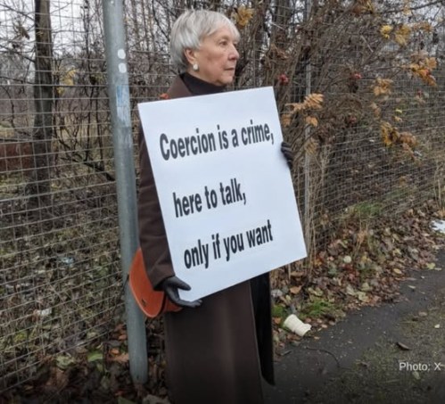 LIFE: Rose Docherty (75) was arrested in February for holding a sign offering conversation while standing within 200 feet of a hospital in Scotland that commits abortions. Thank God, the charges against her have all been dropped.