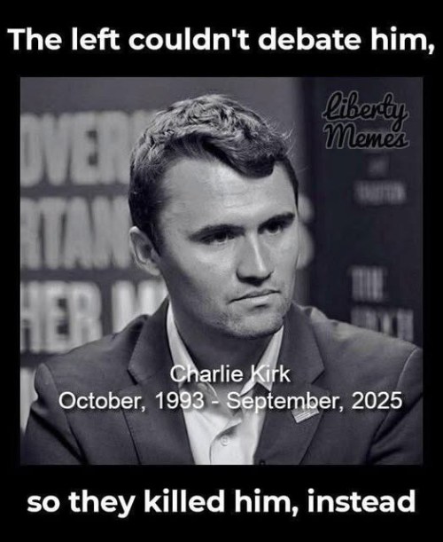 CHARLIE KIRK: CLICK https://www.facebook.com/watch/?v=1309149357259666 to hear why he will be so missed. As I noted yesterday, out of respect for Charlie’s memory, I will not be repeating any of the nasty things leftists are saying about him.