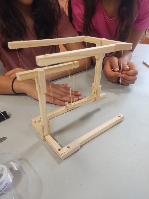 GRAMMY NOTES: The Mascots attend a home school coop for some of their subjects. In science this week, the two older ones built the tensegrity structure that Mama Buzz photographed (above). Wikipedia says its “structural principle [is] based on a system of isolated components under compression inside a network of continuous tension, and arranged in such a way that the compressed members do not touch each other while the prestressed tensioned members delineate the system spatially. Tensegrity structures are found in both nature and human-made objects: in the human body, the bones are held in compression while the connective tissues are held in tension, and the same principles have been applied to furniture and architectural design and beyond.”