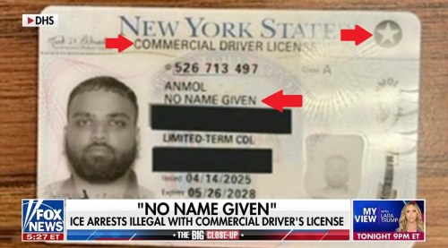 NEW YORK SUCKS: ICE arrested “No Name Given in Oklahoma. This illegal alien holds a New York State Commercial Driver’s License, allowing him to drive semis and transport hazardous materials.