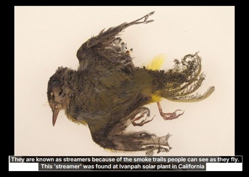 The heat generated by the mirrors also elevated the air temperatures as high as 1,000 degrees, incinerating approximately 6,000 bird deaths each year. Since this only happens during daylight hours, the facility charbroils more than one bird per hour. Yoiks!
