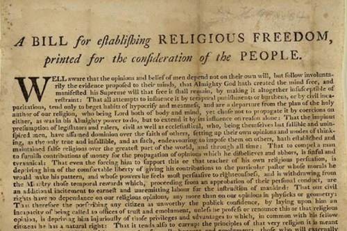 AMERICAN HISTORY: On January 16, 1786, Virginia enacted Thomas Jefferson’s Statute for Religious Freedom. It was one of the most important laws ever passed by the Virginia Assembly, provided inspiration for the Bill of Rights, and was one of the achievements of which Jefferson was most proud.