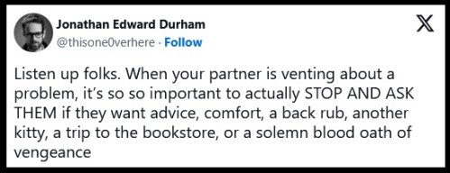 GRAMMY NOTES: CLICK https://www.youtube.com/shorts/RZmnwoUPXOo to hear Lindsey lay down some marriage truth. I always tell Dearest that, if I must, I’ll stop at BOCES on the way home from burying him and sign up for an automotive care course. Until then, I don’t wanna know.
