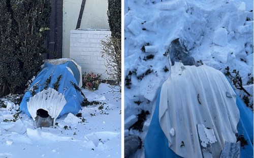 This past week, a statue of the Blessed Mother was knocked over and smashed in the head. Nobody has been arrested for the previous crimes and there is no video footage of the incident that could identify a suspect in the latest incident.