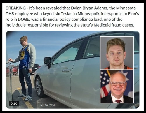IOW, the guy who was never punished for vandalizing Teslas was busy, busy, busy ignoring the billion$ in blatant fraud going on in Minnesota.