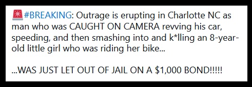 NORTH CAROLINA: CLICK https://x.com/mattvanswol/status/2039354195518603753 [1:13] to hear the news report. The driver, Khalil Burney, is on camera revving his car before running over a little girl, then fled the scene. Despite video evidence of intent and the facts that this man had no insurance, a revoked license, and was using fraudulent registration, some jerk of a judge decided to let him out of jail with just a $1,000 bond.