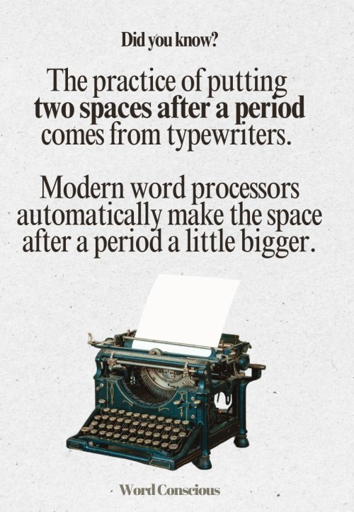 ONE SPACE or TWO? On typewriters, every letter takes up the same width, so a single space after a period makes sentences blend together visually. Thus, the rule was to use two spaces. Computers and word processors use proportional fonts, making the second space not only unnecessary, but unattractive, since it creates too much visual space after periods.