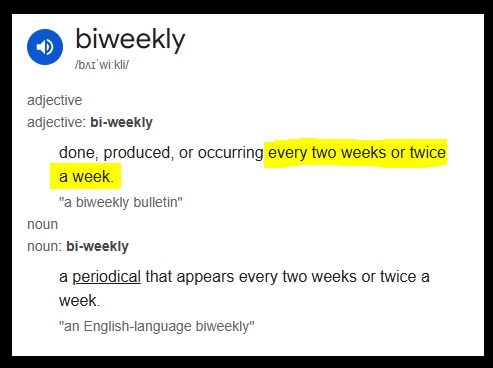 USELESS WORDS: Also, bimonthly (occurring either two times in one month or every other month) and biannually (occurring either two times each year or every other year).