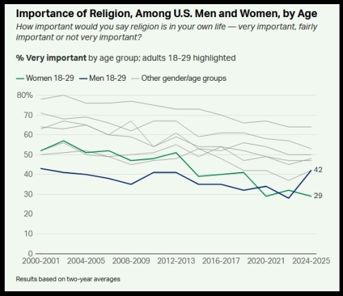 IMPORTANCE of RELIGION: Gallup is showing a dramatic upsurge in religiosity among young American males.