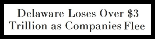DELAWARE: For over a century, Delaware has been the preferred home for corporations, but that has changed under Deep Blue Democrat rule. More than 60 public companies have moved or are fleeing Delaware for more business-friendly states such as Texas, Florida, and Nevada.