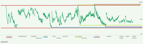 There’s been some nonsense talk about how Trump supposedly has the “lowest approval rating in history” and that the WHCD shooting was staged to improve those numbers. You can look at the historical approval records yourself; there’s no pay wall.