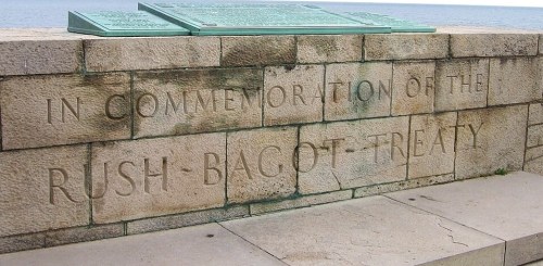 AMERICAN HISTORY: On April 28, 1881, the U.S. and Great Britain sign the Rush-Bagot treaty, demilitarizing the US-Canada border. Photo: Memorial terrace to the Rush–Bagot Treaty at Old Fort Niagara.