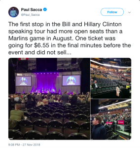 Clintons’ speaking tour event in Toronto had 83% of the seats empty