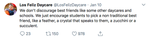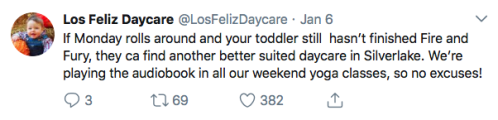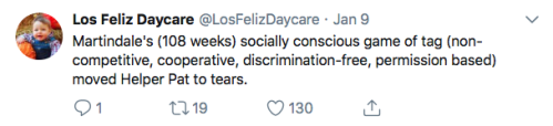 Los Feliz Daycare (motto: “We do not accept immunized children”) is an ultra-progressive child care center in an unspecified affluent neighborhood on the left coast. Some recent tweets: