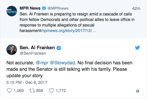 The walls are closing in on Sen. Al Franken, with a seventh accuser stepping forward today and multiple Democrats calling for his resignation in the aftermath, including DNC chair Tom Perez and more than 20 Senators (and counting).