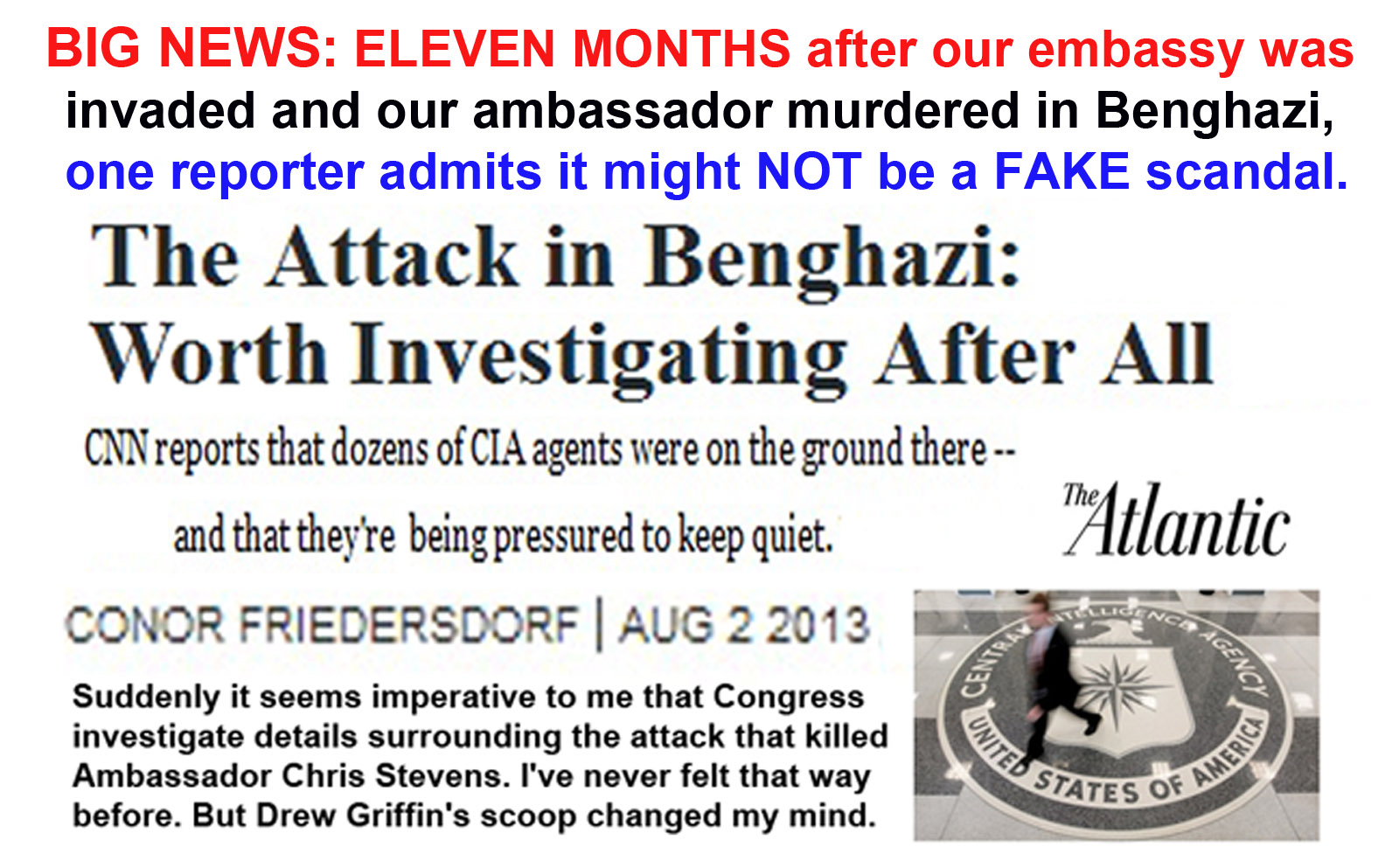 “Like many people, I figured anti-American radicals had launched the attack, guessed that Obama was as upset about it as anyone, and didn’t blame him or Hillary Clinton for failing to secure a diplomatic outpost in an unstable country. I opposed Team Obama’s reelection for totally unrelated reasons.”