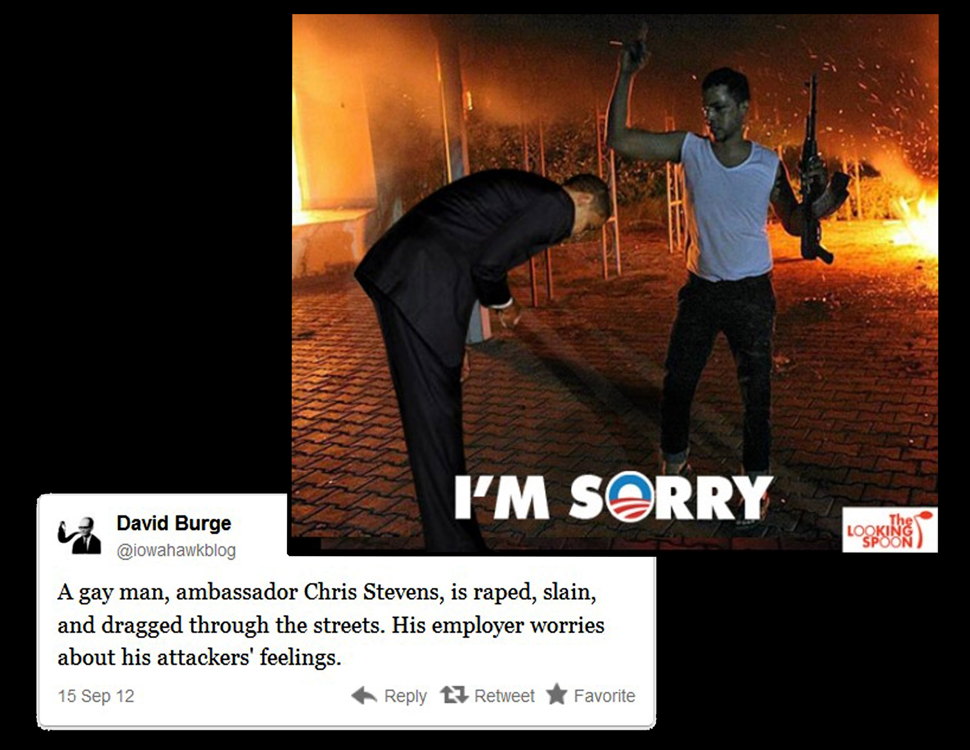 I mentioned this idea to Dearest … that the reduced security at our embassies could have been a perverse Democrat plot to produce a winning October Surprise for Obama … and he was amazed that anyone could even think such a thing.