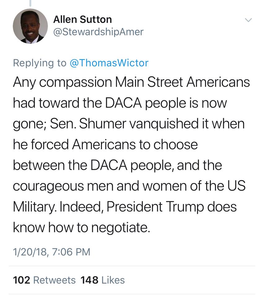 “Would you favor or oppose Democrats voting to shut the government down if the continuing budget resolution does not include restoring so-called DACA work permits for undocumented immigrants brought here illegally by their parents?”
