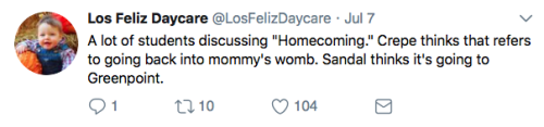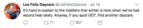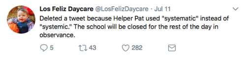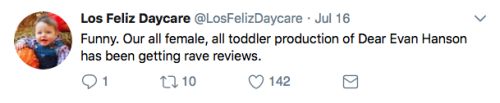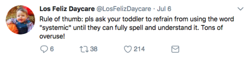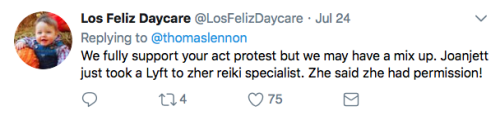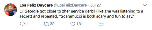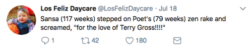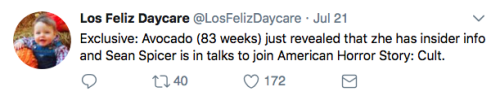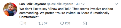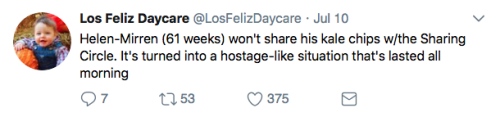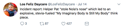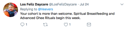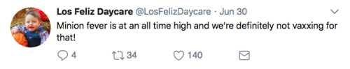 Los Feliz Daycare (motto: “We do not accept immunized children”) is an ultra-progressive child care center in an unspecified affluent neighborhood on the left coast. Some recent tweets: