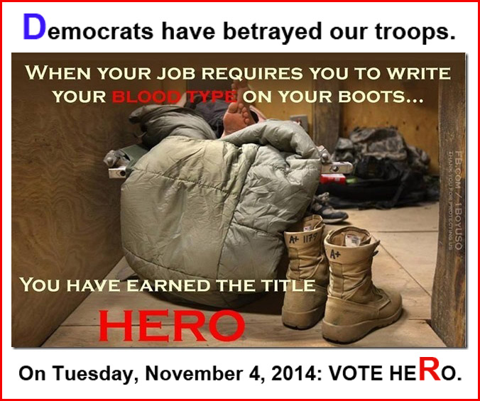 Democrats have a long history of short-changing our troops’ benefits and selling them out on the battlefield. This is why most of our soldiers vote Republican. More than 1,000 American soldiers have lost their lives in Afghanistan JUST in the last 27 months! This is more than the combined total of the nine years before. Have you heard a word? No. Why not? Because Democrats DON’T CARE ABOUT OUR TROOPS.
