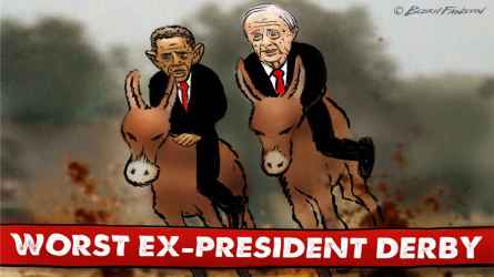 In the worst president bout, Obama takes the gold because Jimmy Carter at least recognized his mistakes with Iran and at the end of his term increased defense spending, and showed some muscle with the Carter Doctrine, which put the world on alert that the U.S. would use military force to defend its interests in the Persian Gulf. Obama, without the nuclear-armed Soviet Union still fighting the Cold War, ended his second term with the disastrous Iran nuke agreement, and with Russia and Iran rampaging through Syria in support of a psychopathic autocrat.