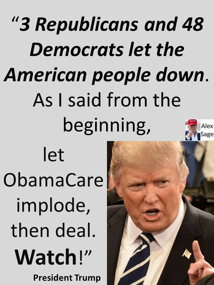 Last night Senator McCain, 48 Democrats and two fellow Republicans killed Obamacare repeal.