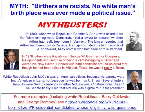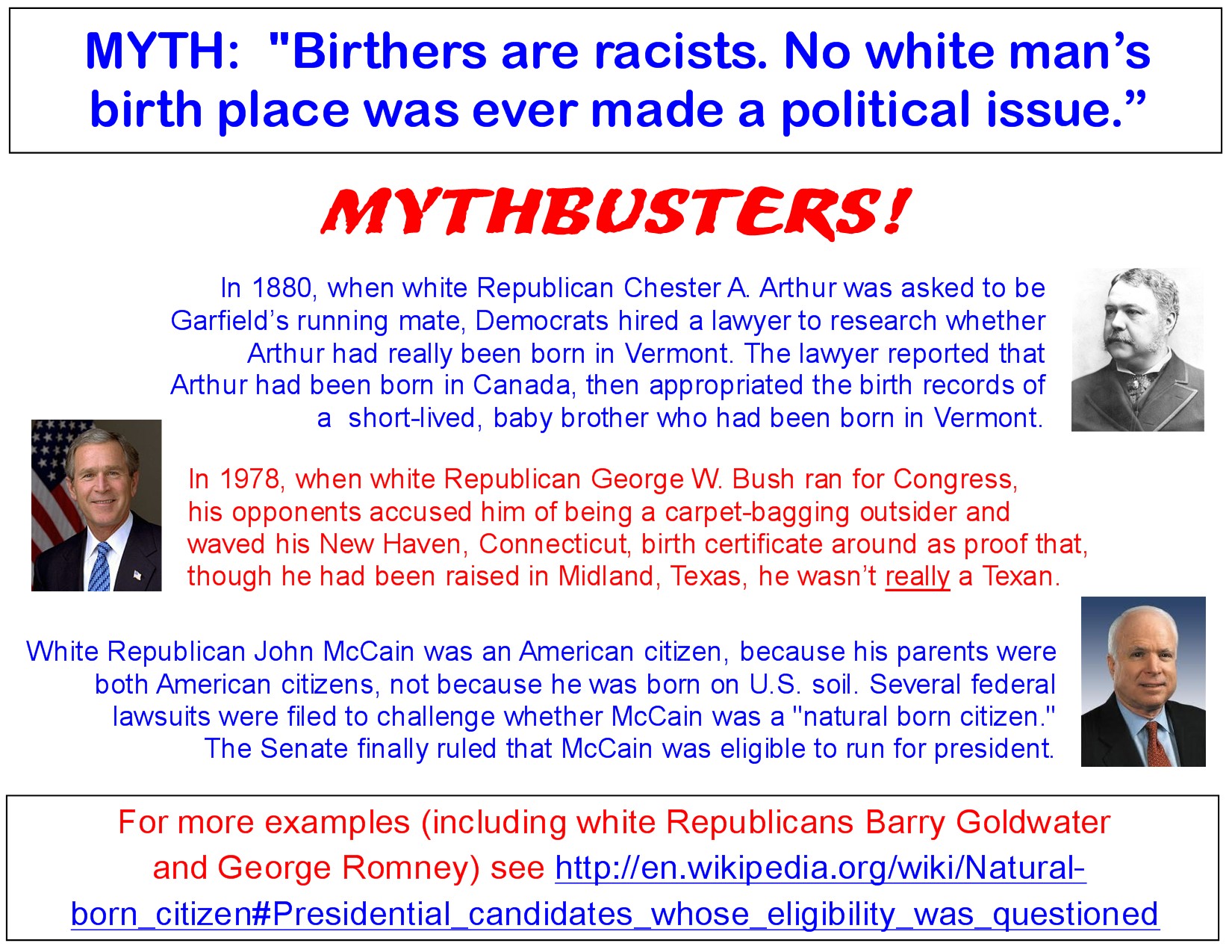As per usual, the mainstream media and left-blogosphere are saying the issue of Obama’s constitutional qualification to be President is all about race. Hogwash.