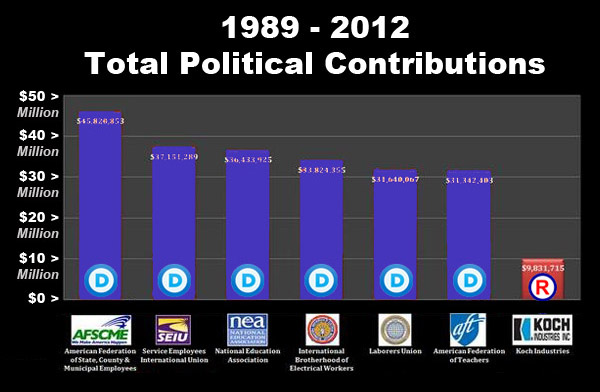The Koch brothers are waaaaay down at #59. And six of the top ten are UNIONS that donated to Democrats 15 times what the Koch brothers donated to Republicans.