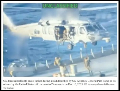 VENEZUELA: On December 10, the Trump administration seized an oil tanker off the coast of Venezuela, stating that it was connected to terrorist organizations. White House press secretary Karoline Leavitt said on Dec. 11 that the government will be moving the tanker to a U.S. port and keeping the oil.
