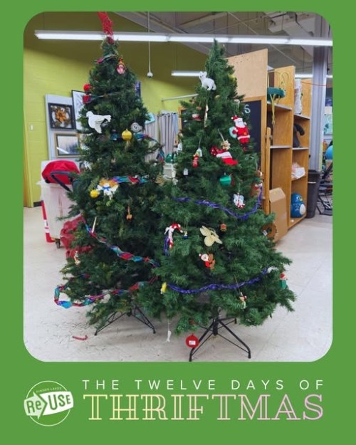 Some people say, “I want a FRESH Christmas tree.” Okay, but these trees at ReUse are experienced. These trees have references. These trees have resumes. “December 2023 – Held 47 ornaments, zero complaints.” “December 2022 – Supported a 12-foot garland, didn’t even wobble.” We got trees with CREDENTIALS. Pick one. They’re all qualified. #Thriftmas#12DaysofThriftmas