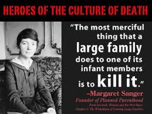 - “A drastic curtailment of the birth rate at the source of the unfit, the diseased and the incompetent” was necessary, and to accomplish this “the birth control clinics all over the country are doing their utmost to reach the lower strata [minorities] of our population.” – Margaret Sanger