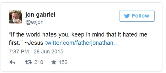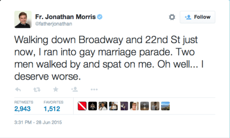 The Left won, but it wasn’t about love. Those people are filled with hate even after they’ve gotten what they wanted. One of them actually spit on Fox News’ Father Jonathan Morris during a gay pride event Sunday night. Father Jonathan responded with this: