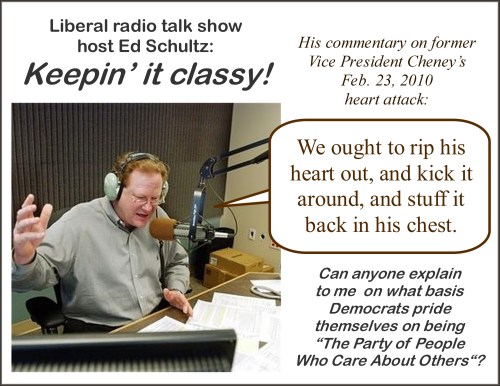 It’s not my imagination that the Left actually revels in their hate, is it? I mean … they BRAG about having shouted down or spit on or thrown tomatoes at conservative speakers and they publish and broadcast the most racist and misogynistic trash in the same venues where they flay conservatives for IMPLIED sins against Political Correctness and Civility. It’s like they’re really PROUD of being foul-mouthed and narrow-minded.