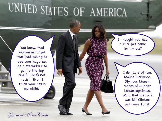 Now comes his seed mother, Mochelle, flashing a $2300 dress at the State of Denial Address