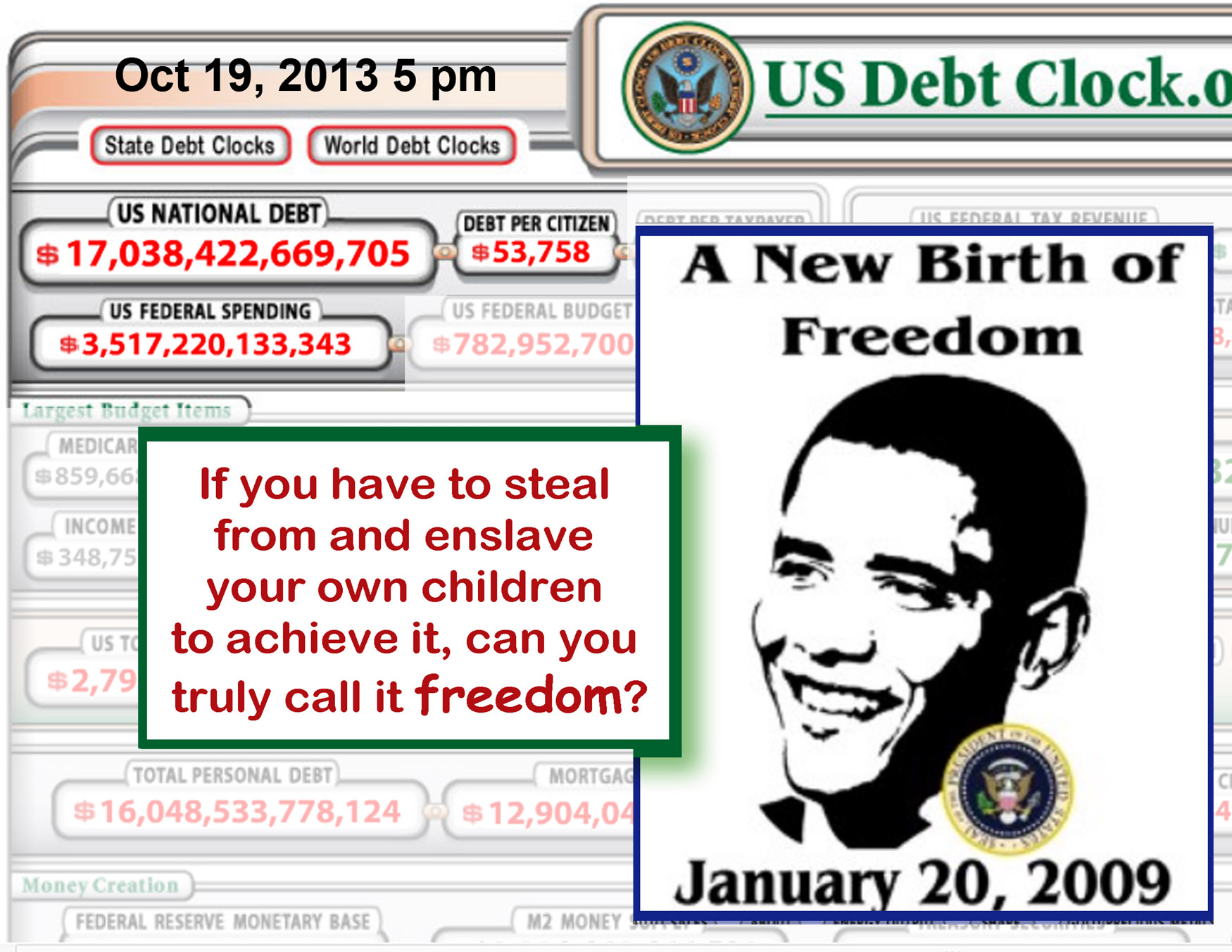 His Secretary of State, John Kerry, thinks half a Billion wasn’t enough; he wants we should give those who live to wipe the U.S. and Israel off the face of the Earth a cool $4 Billion … yet the White House remains closed to tourists and my military kid’s been furloughed because … refer back to line one … the United States is BROKE.
