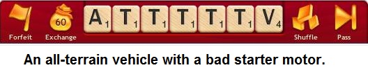 I used to be part of their games until my puter got too far behind the trailing edge of technology. I’ve got a new-old puter, Daddy Buzz’s previously owned laptop that he outfitted for on-line gaming. I’m hoping it’ll be more than up to the challenge of dumb ol’ Facebook SCRABBLE! Now if I could just muster enough Hyphenated brain cells to get it set up …