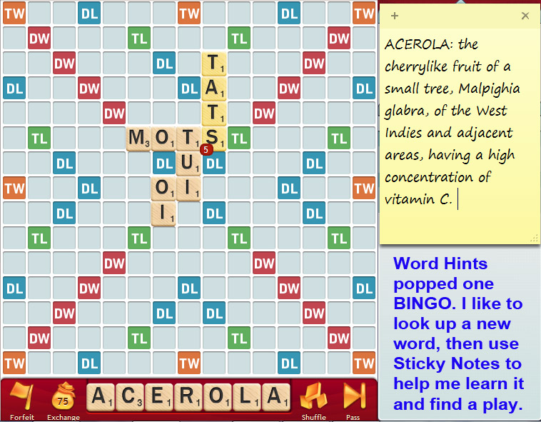 BINGO is a slang term used in Scrabble for a play using all seven of one’s tiles.