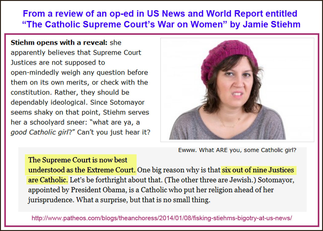 I think it’s more to the point to say that Democrats can’t stand conservative Christians, especially not the Catholic ones, and that they have zero qualms about making religion an issue when it suits them. You KNOW they’d be screaming bloody murder if Republicans asked a Muslim jurist how his faith would influence his judicial conduct.