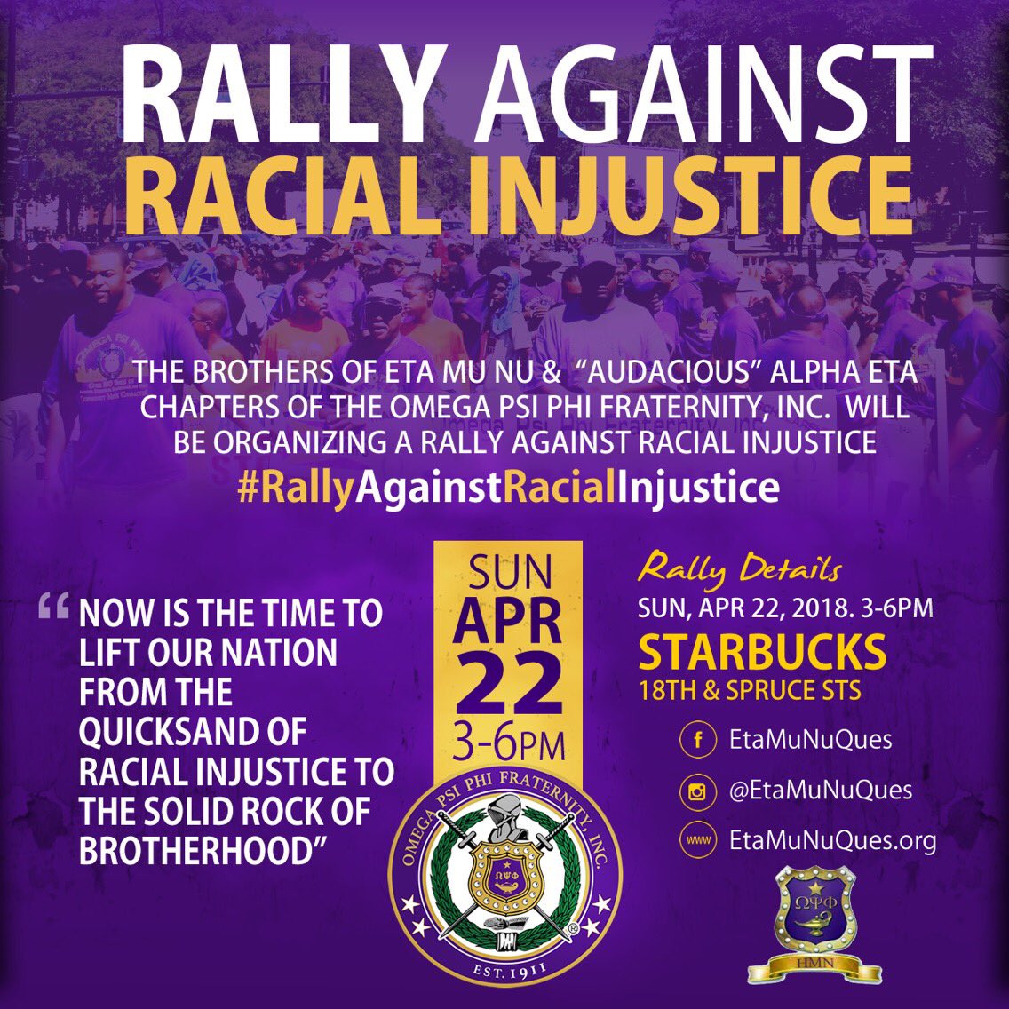 More than 100 fraternity members and supporters attended the “Rally Against Racial Injustice” on Sunday afternoon, held near the downtown Philadelphia Starbucks where Nelson and his friend, Donte Robinson, were arrested on April 12 after the store’s manager asked them to leave because they hadn’t purchased anything.