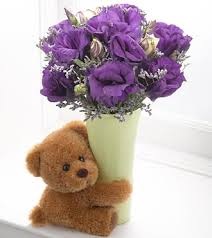 Sad bear hug, purple roses