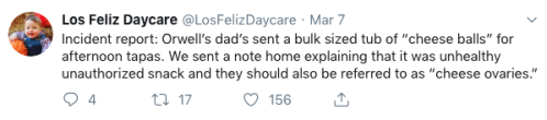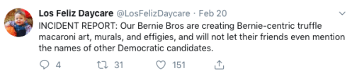Los Feliz Daycare (motto: “We do not accept immunized children”) is an ultra-progressive child care center in an unspecified affluent neighborhood on the left coast. Some recent tweets:
